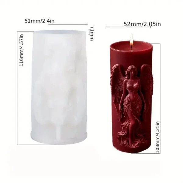 Naum’s Angel Pillar Silicone Mold (116 mm × 61 mm) – Durable, flexible, and perfect for crafting elegant angel-themed pillar candles, resin pieces, and spiritual décor.